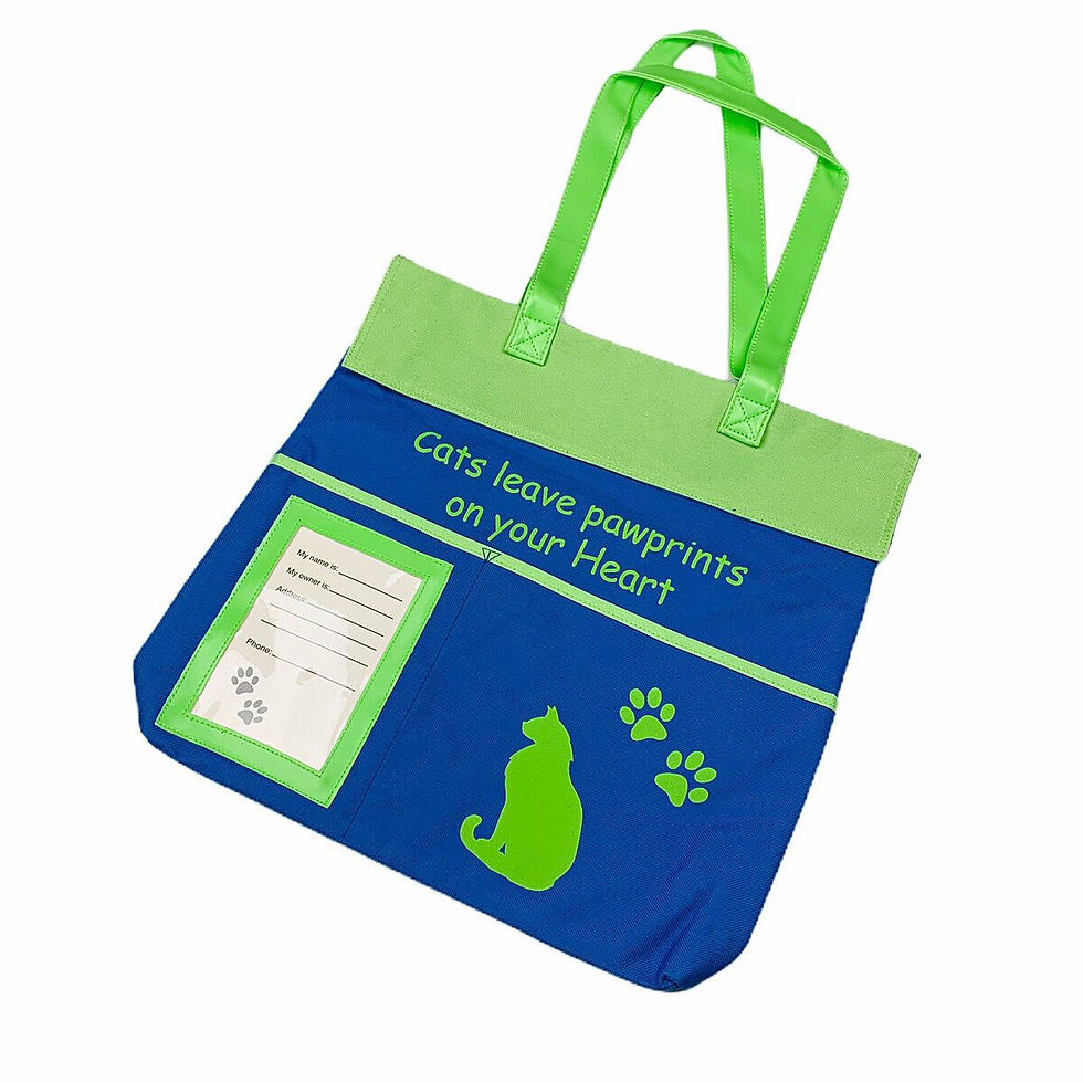Cats Leave Pawprints on Your Heart Blue and Green Canvas Carry All Tote Bag
