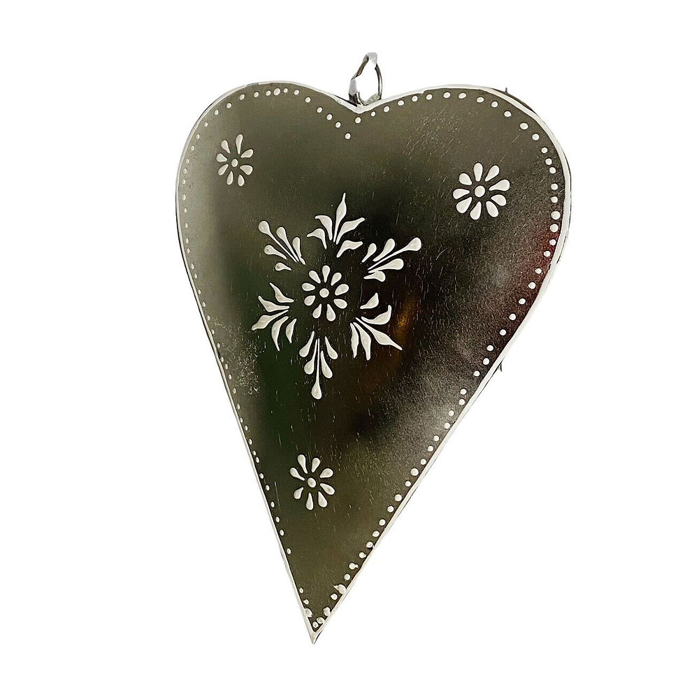 Snowflake Heart White & Brushed Metal Christmas Ornament