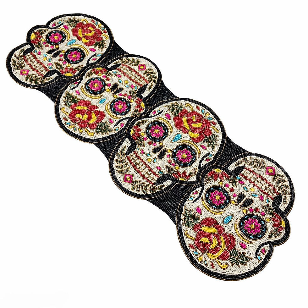 Cynthia Rowley Halloween Day of the Dead Sugar Skulls Beaded 39" Table Runner