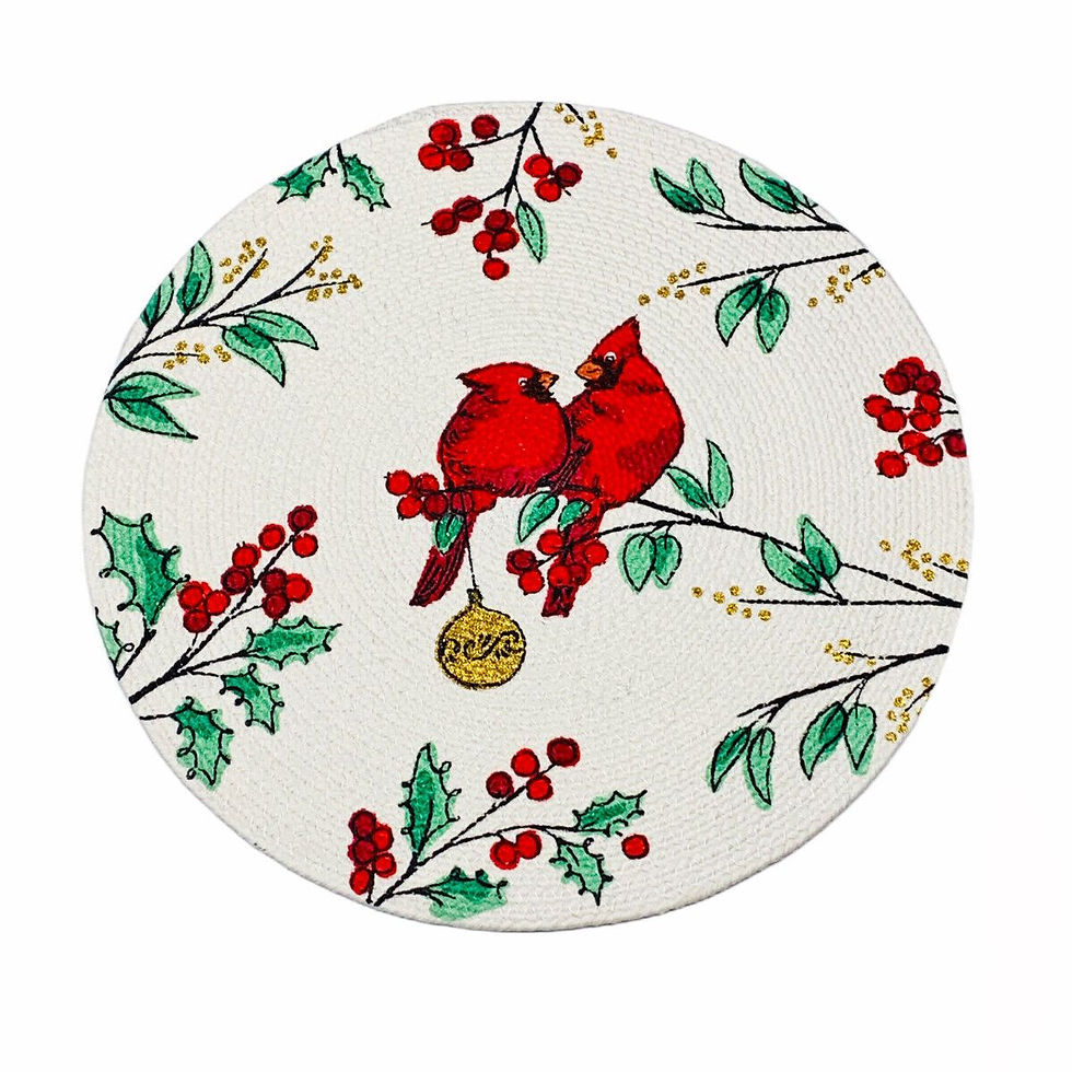 Christmas Cardinals Holly Berry Berries Braided Single Round Placemat