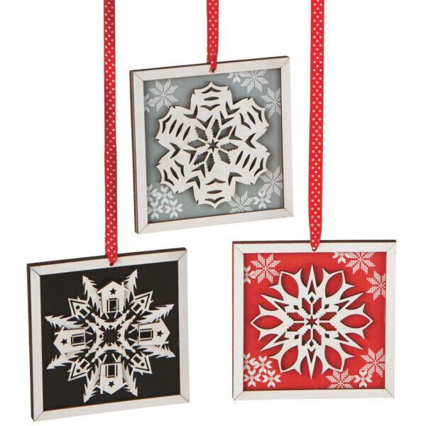 Framed Snowflake Scene Nordic Winter Laser Cut Christmas Ornament Set of 3