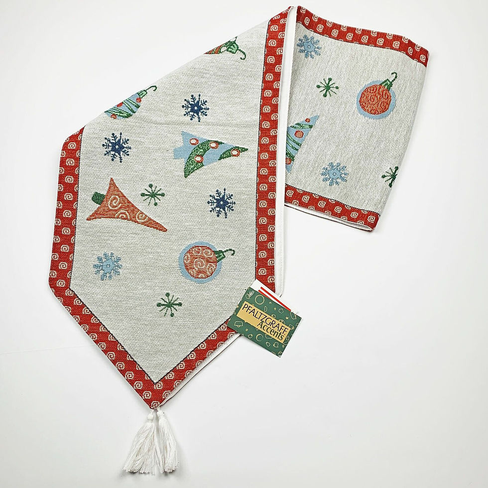 Pfaltzgraff Taffy Candy Christmas Trees Snowflakes Bulbs Tapestry Table Runner
