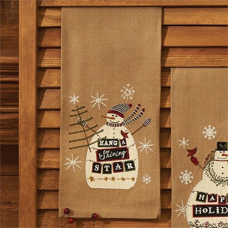 Hang A Shining Star Christmas Snowman Embroidered Applique Kitchen Dish Towel