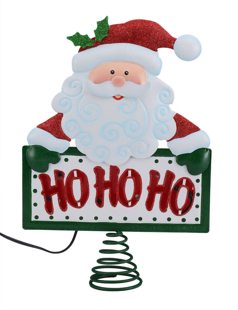 Holiday Time 10.75" Santa Ho Ho Ho Christmas LED Metal Tree Topper