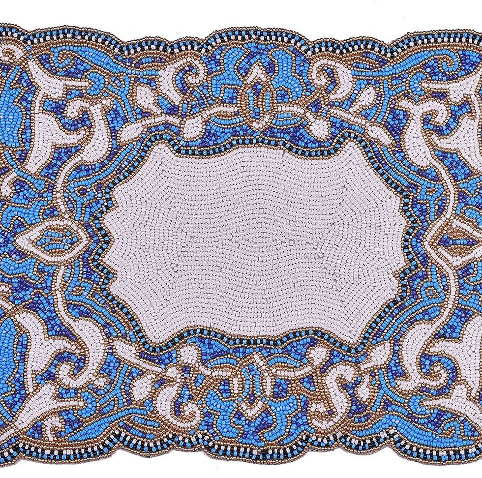 Art Nouveau Gilded Age Blue & Gold Ornate Filigree Beaded Single Placemat