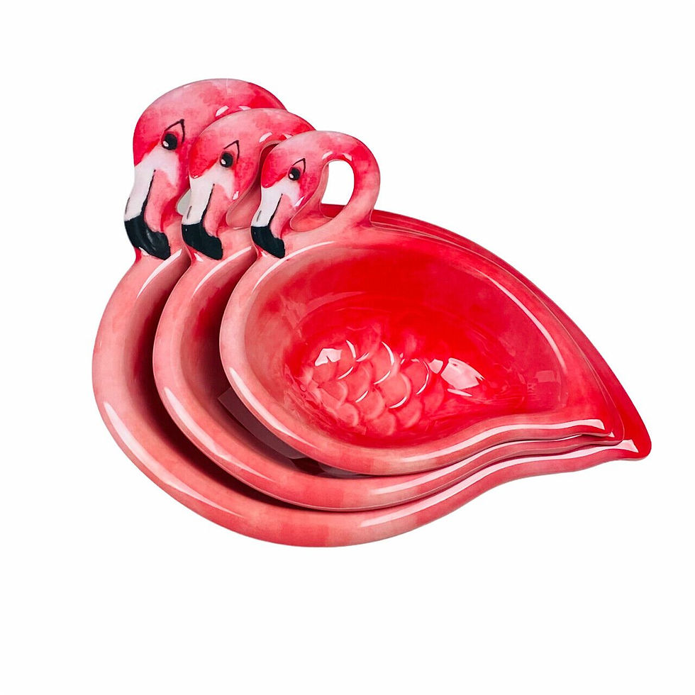 Tommy Bahama Pink Flamingos Flamingo Melamine Nesting Serving Bowls Set of 3