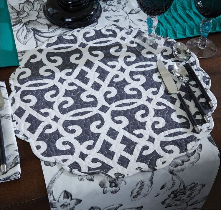Madison Floral & Geometric Reversible Cotton Round Placemat ~ Quilted