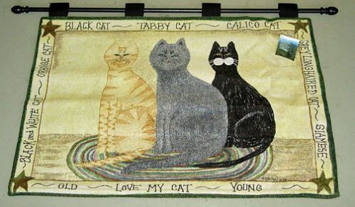 Love My Cat ~ Feline Cat Trio Tapestry Wall Hanging