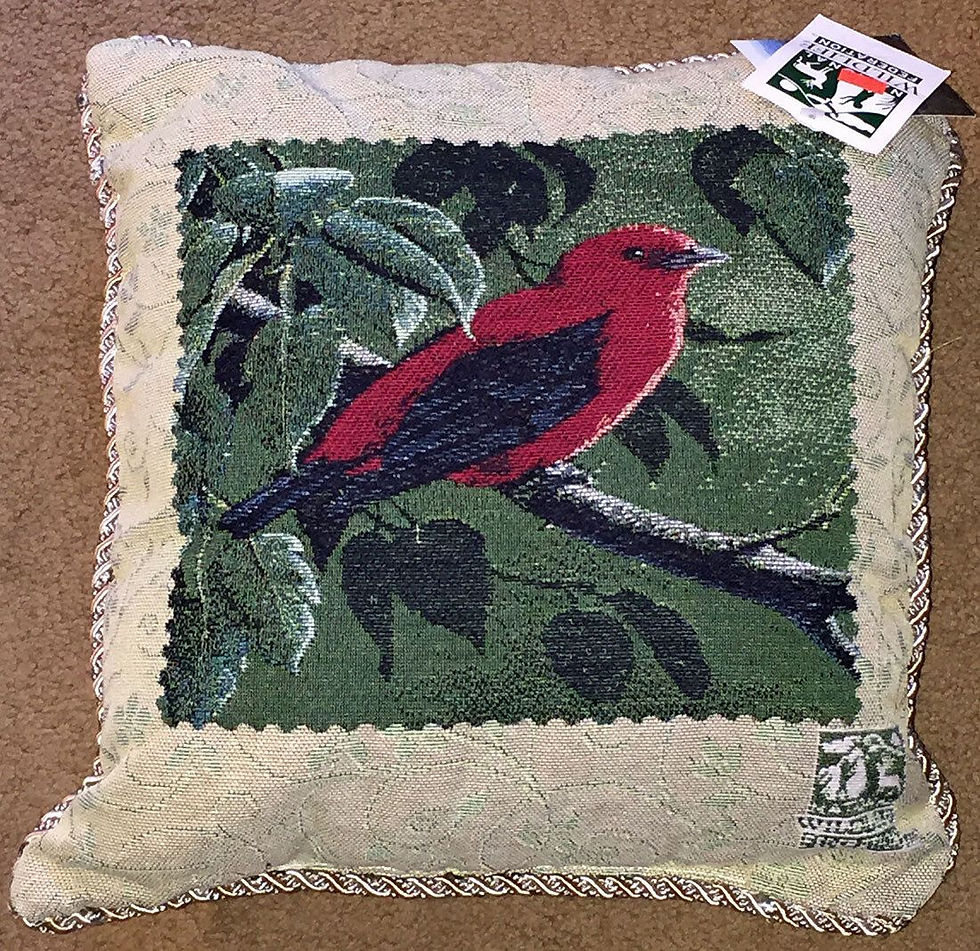 Song Birds Scarlet Tanager 17" Tapestry Square Pillow ~ National Wildlife Fed.